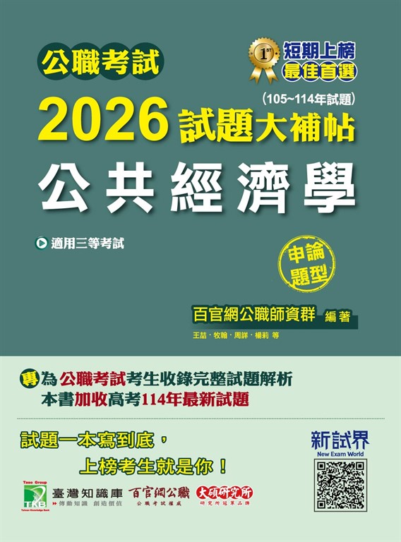 公職考試2026試題大補帖【公共經濟學】(105~114年試題)(申論題型)[適用三等/高考、地方特考](CK5131)